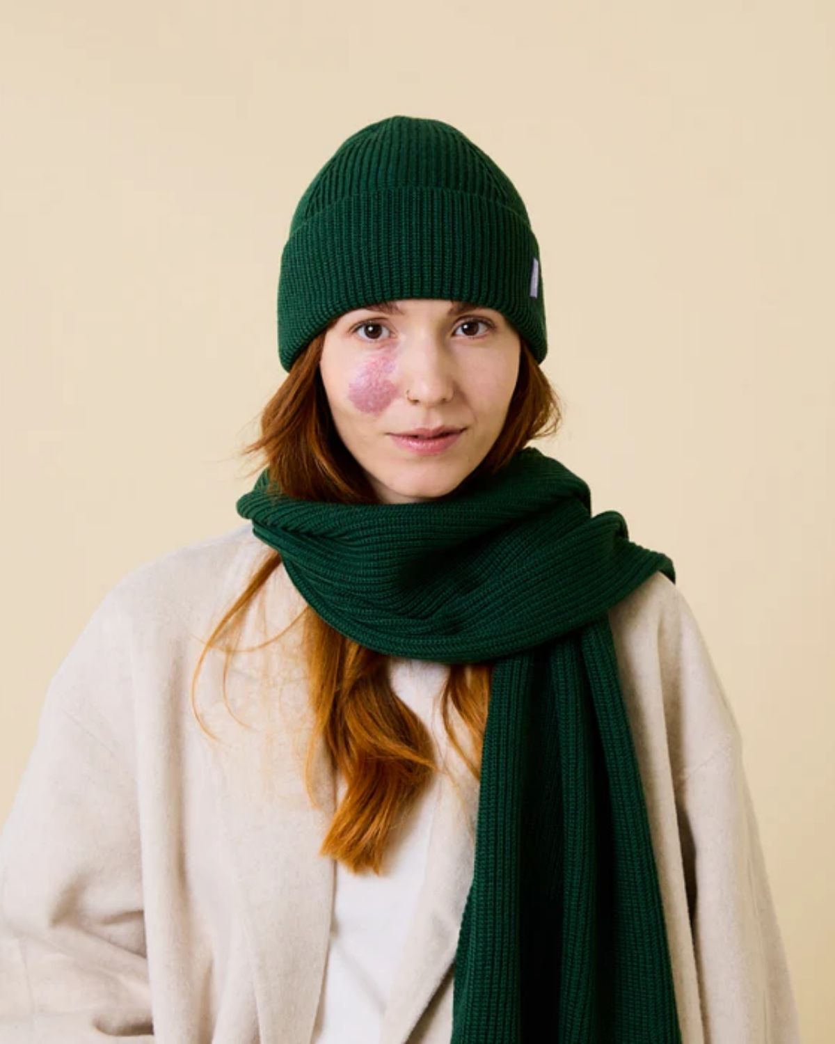 Du suchst das passende Matching - Set? Schau dir den Merino Schal von Popeia in dunkelgrün an.
