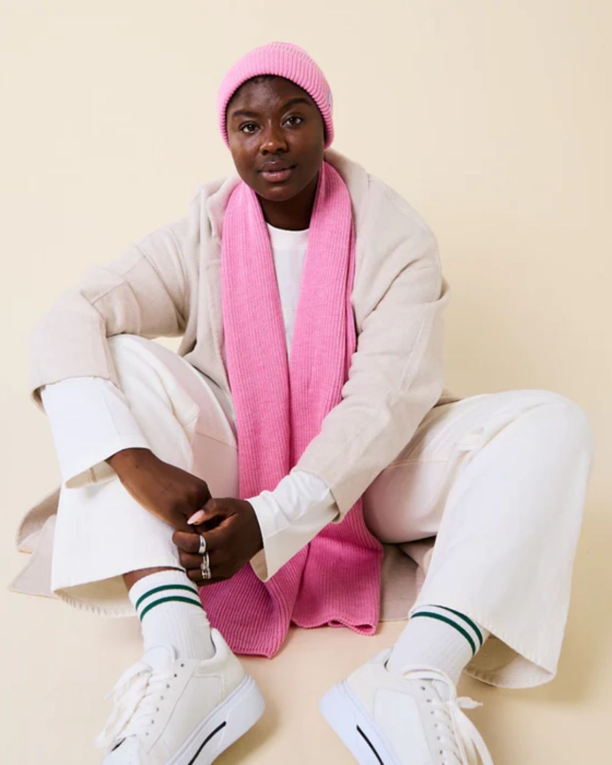 Du suchst das passende Matching - Set? Schau dir den Merino Schal von Popeia in rosa an.