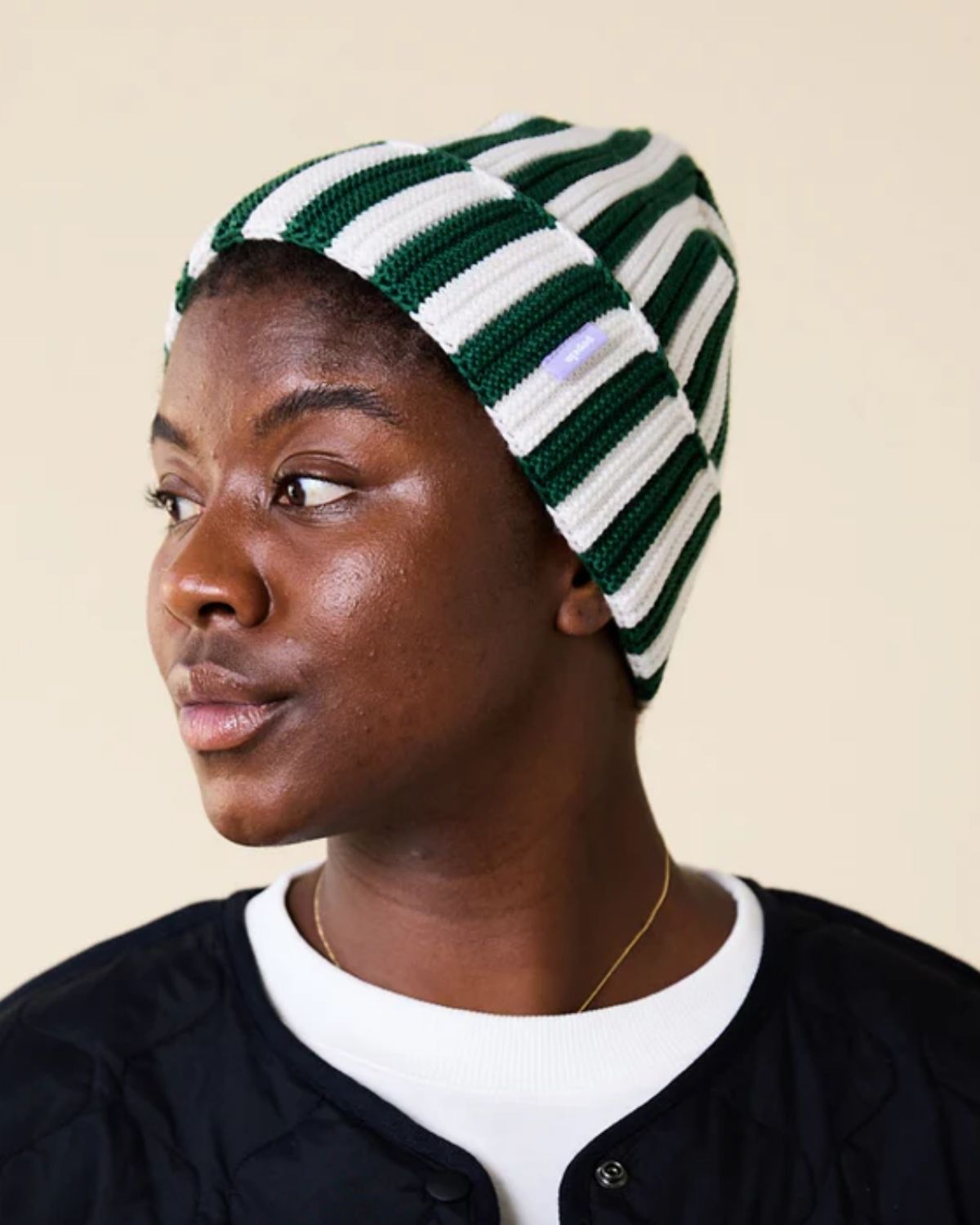 Mütze aus Merinowolle | Dunkelgrün-Weiß gestreift